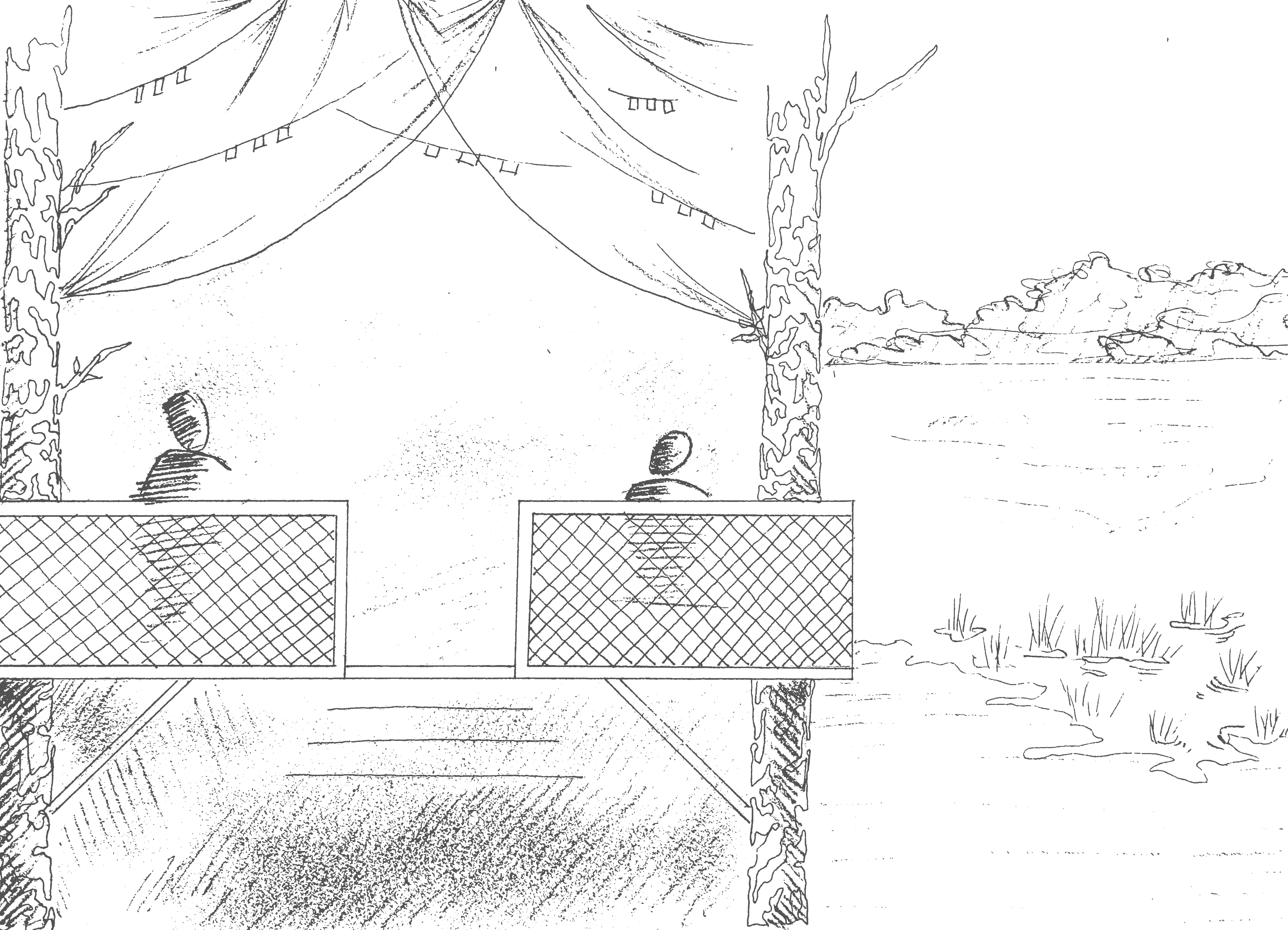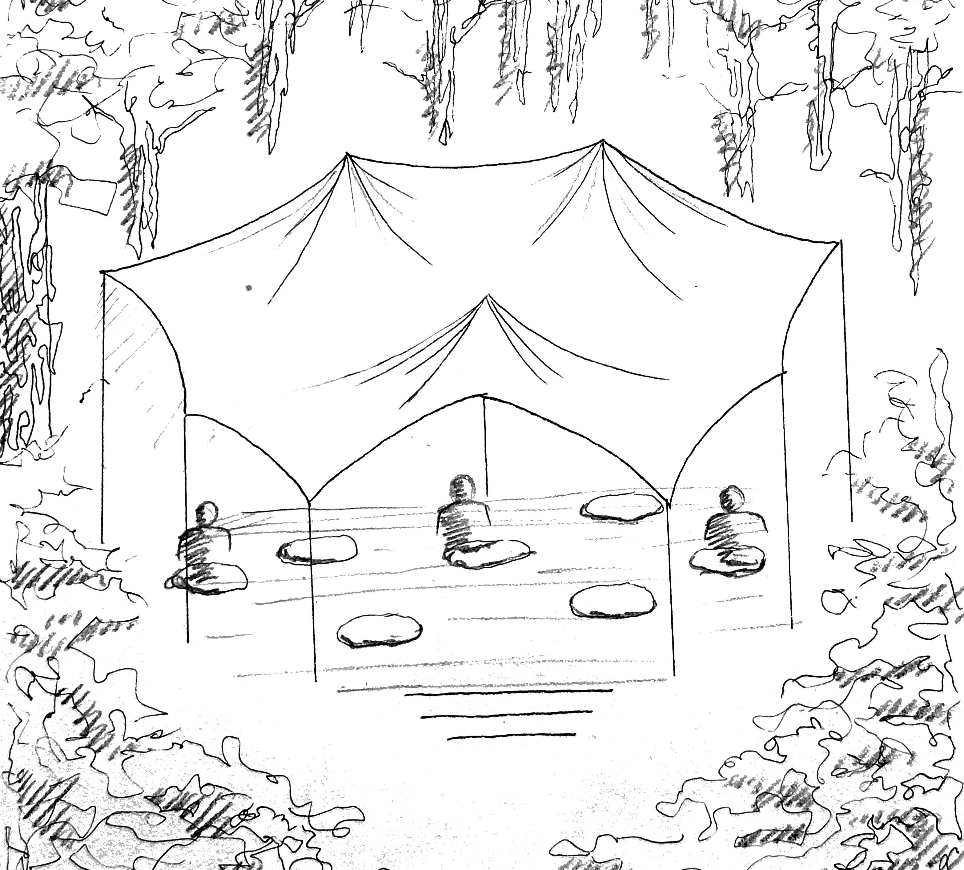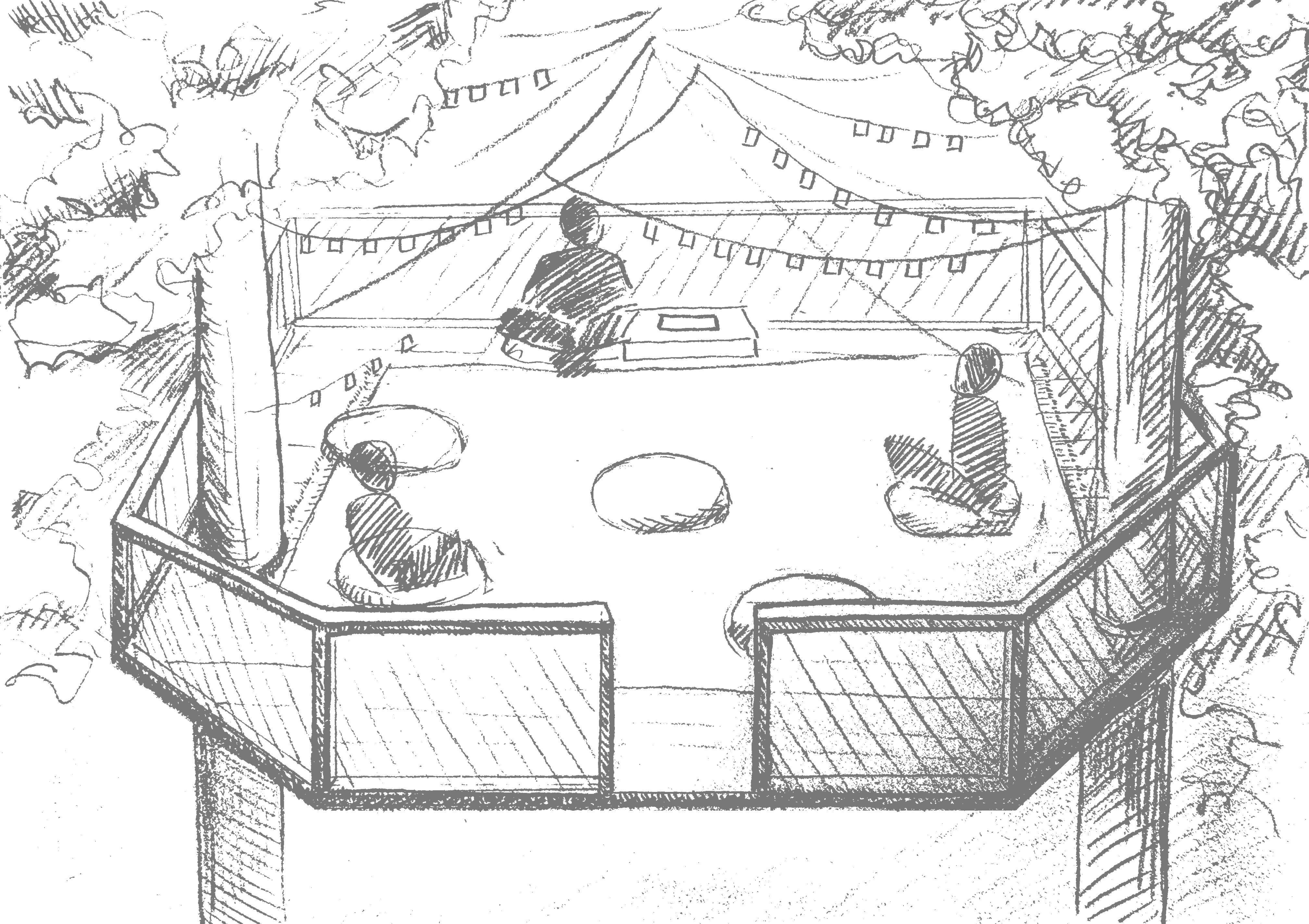 If an elevated, lakeside structure is not available to us, we are open to reimagining the installation in another setting— for example, a dock or platform reaching over the water, or a quiet alcove or tent on level ground, where visitors can still feel a gentle connection to the lake or surrounding woods (See concept sketches below.)